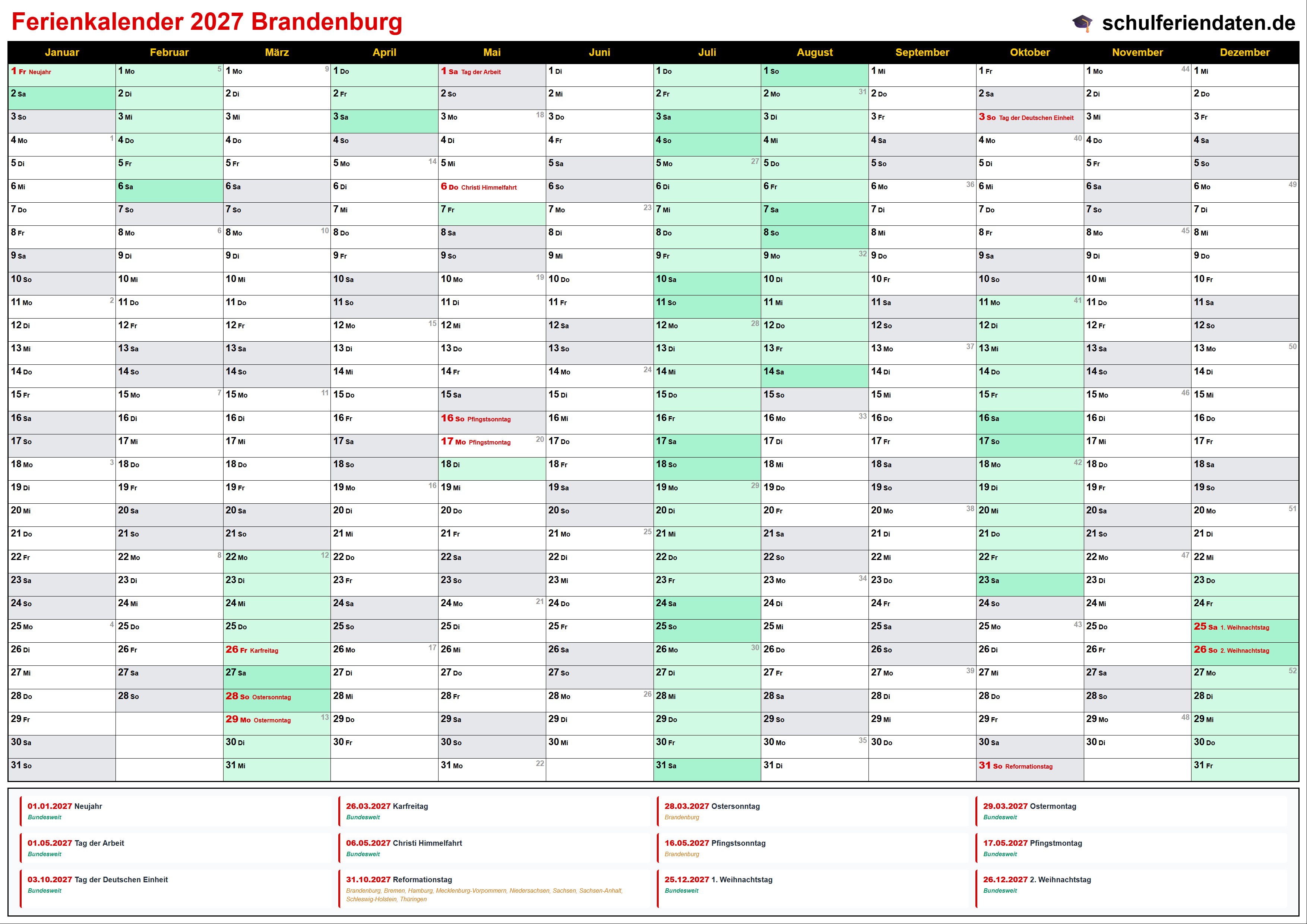 Ferienkalender Brandenburg 2027