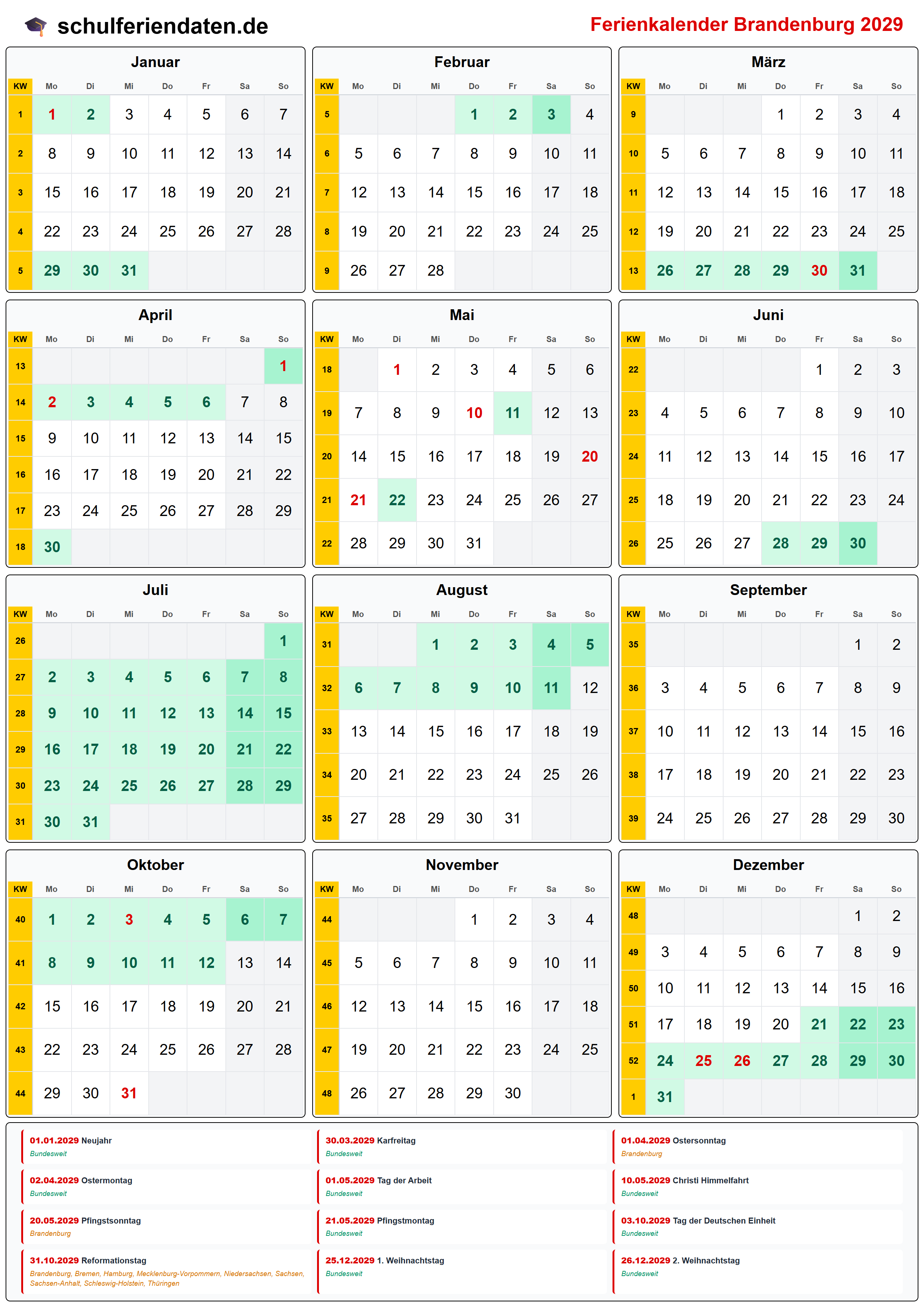 Ferienkalender Brandenburg 2029