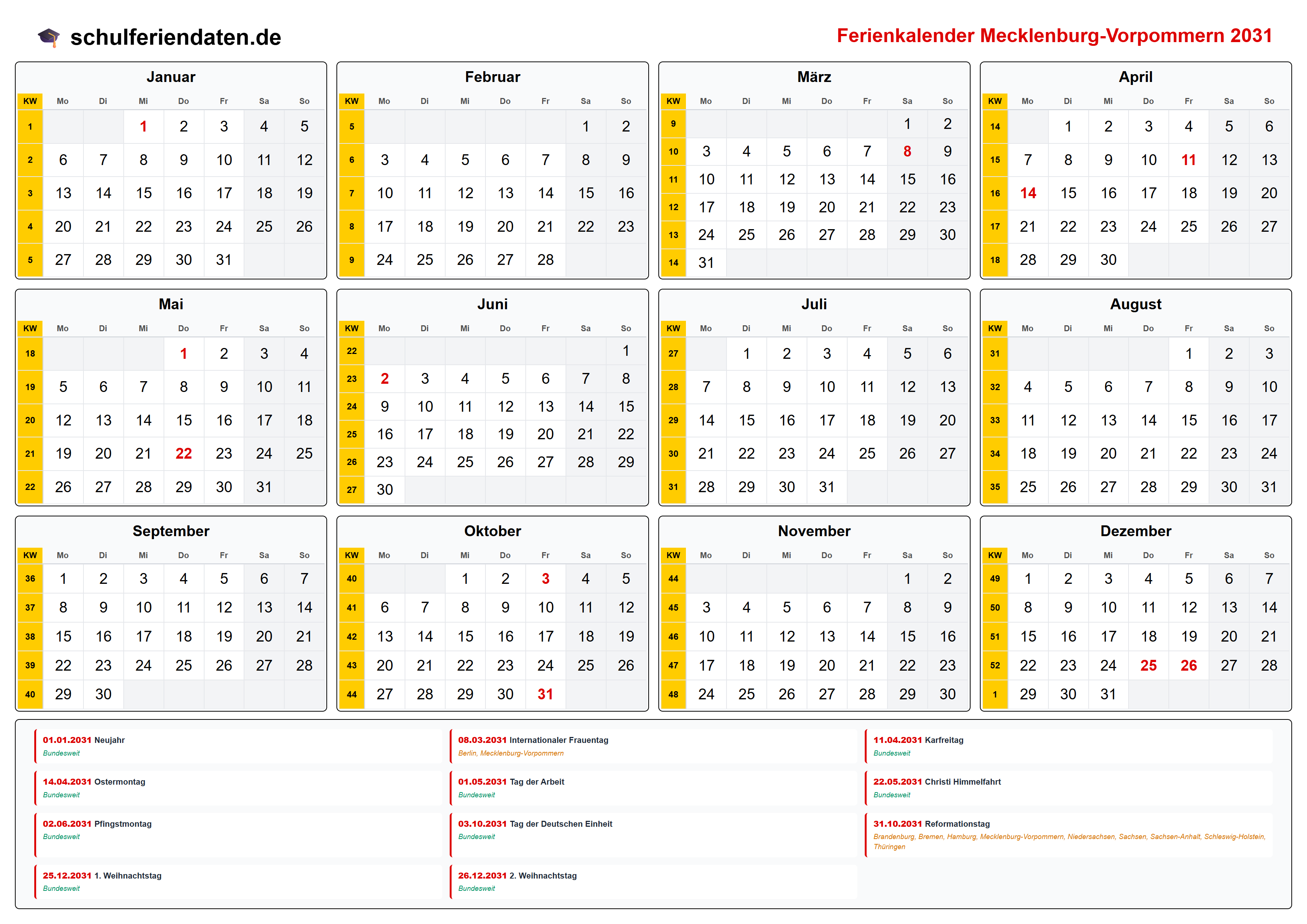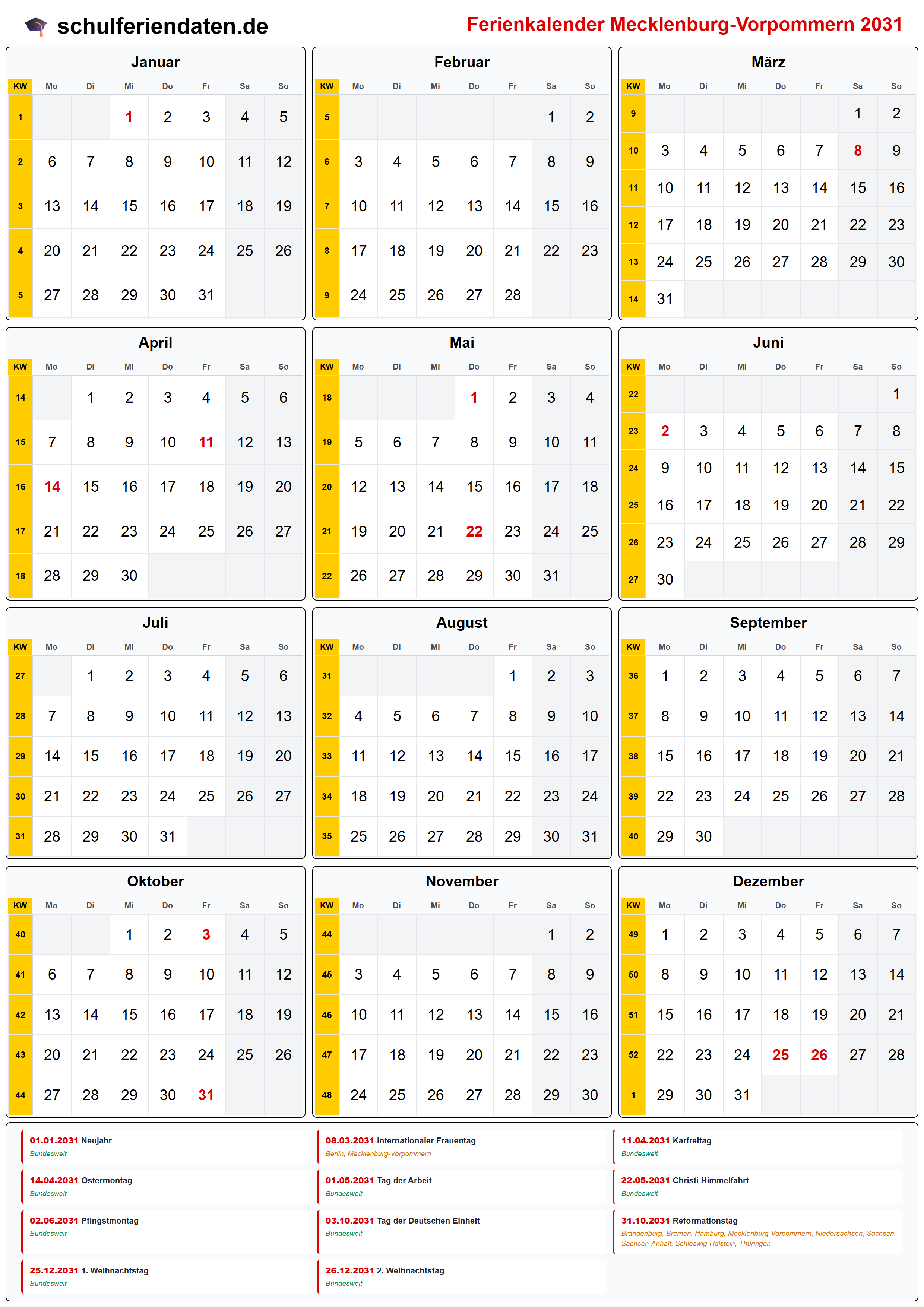 Ferienkalender Mecklenburg-Vorpommern 2031