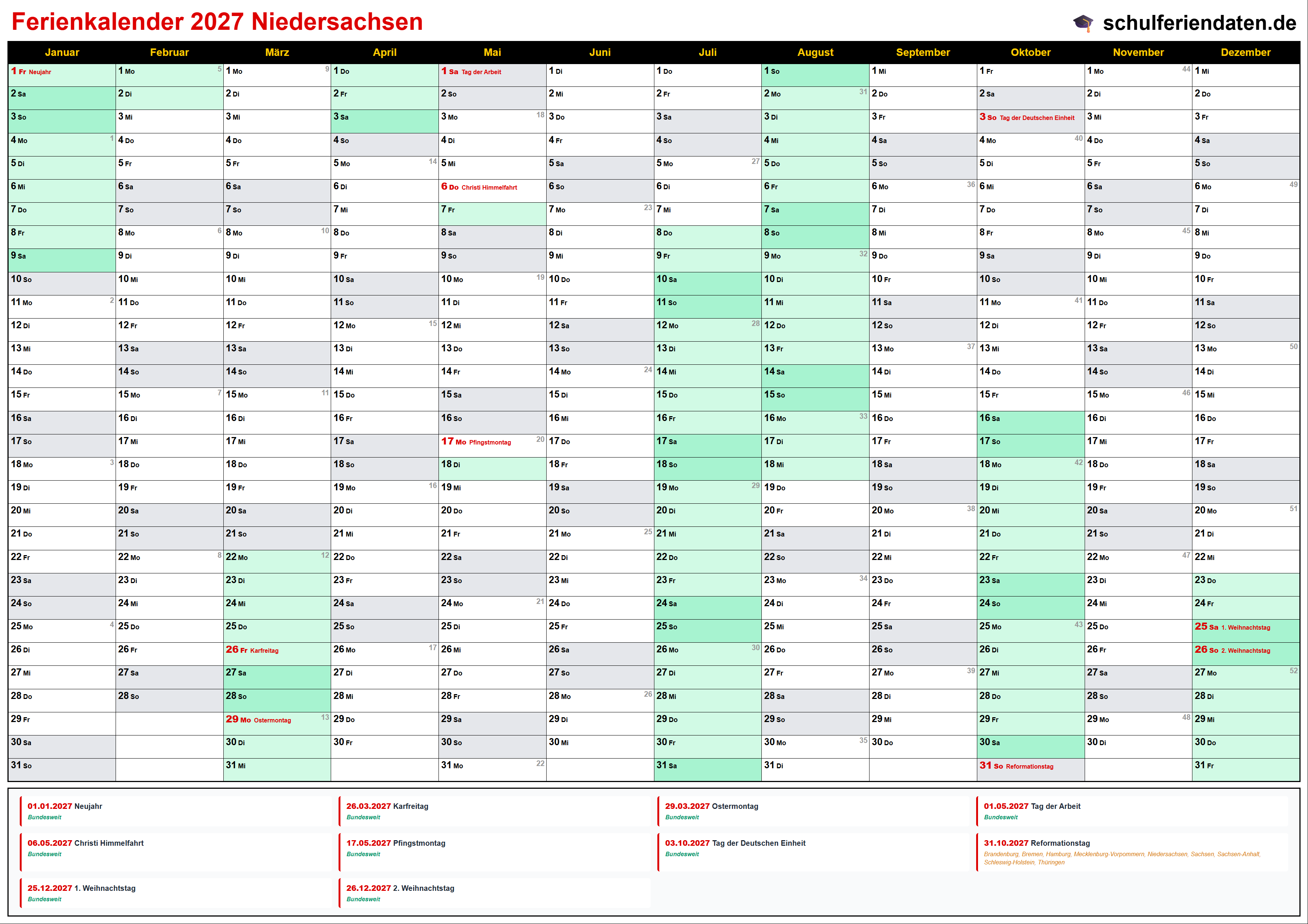 Ferienkalender Niedersachsen 2027