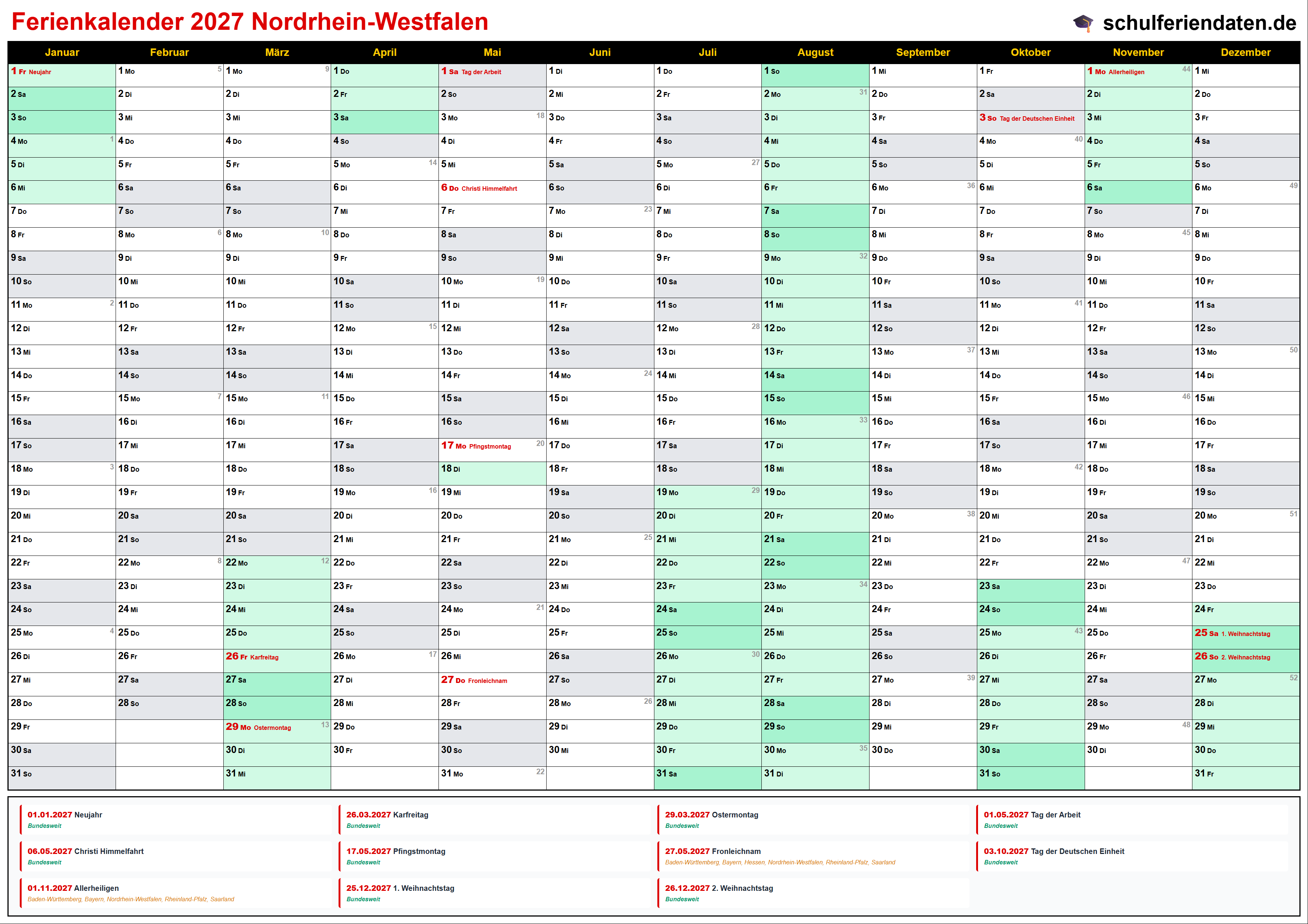 Ferienkalender Nordrhein-Westfalen 2027