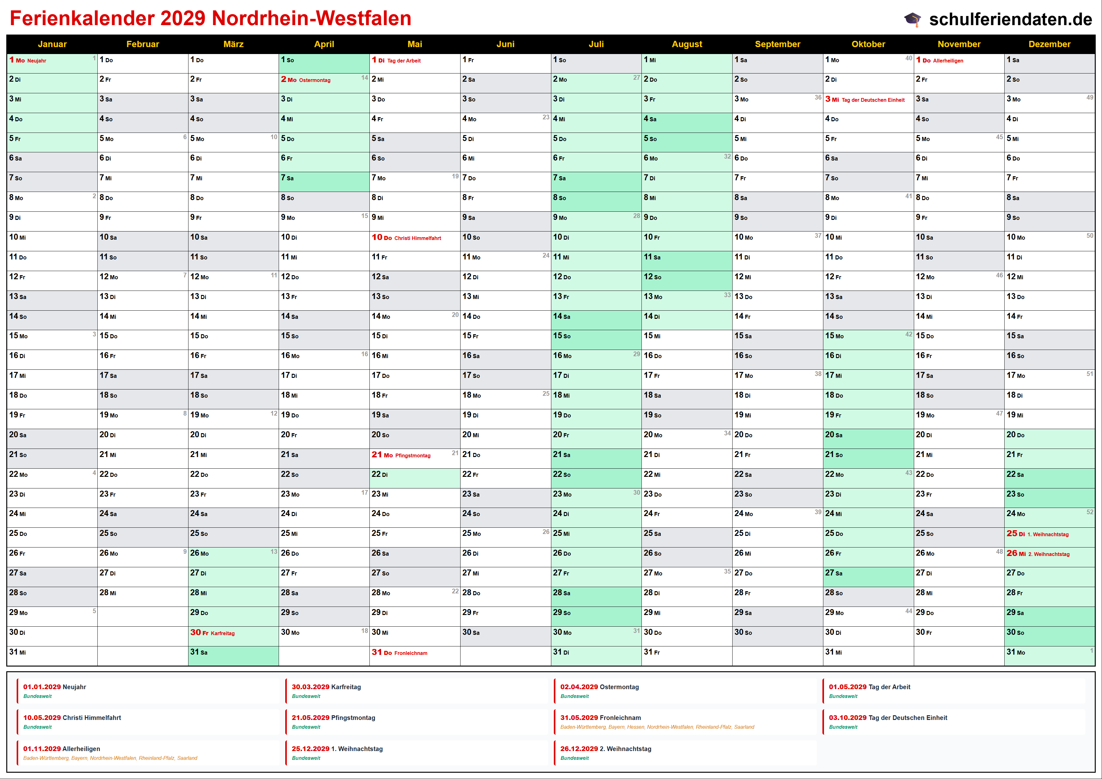 Ferienkalender Nordrhein-Westfalen 2029