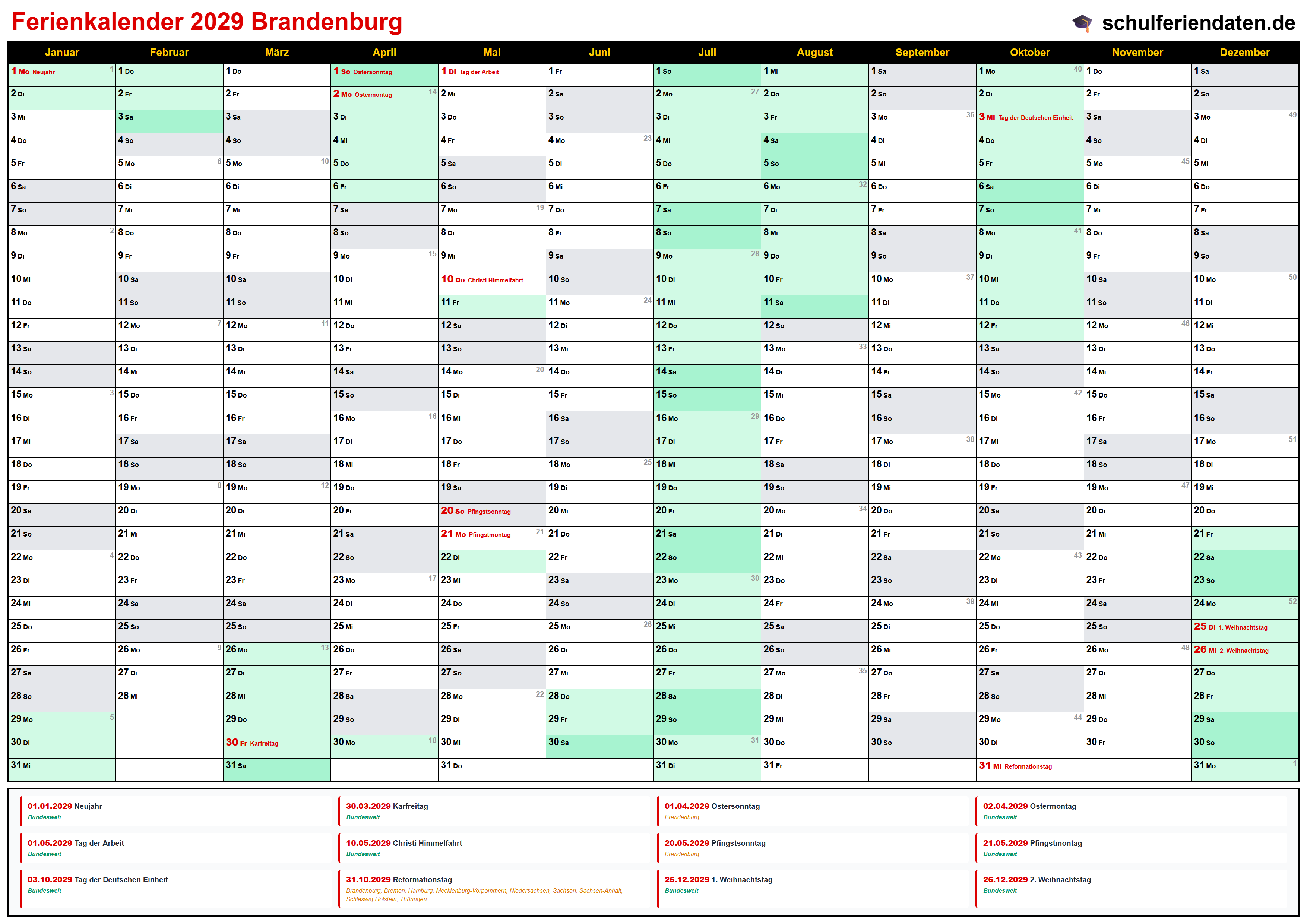 Ferienkalender Brandenburg 2029