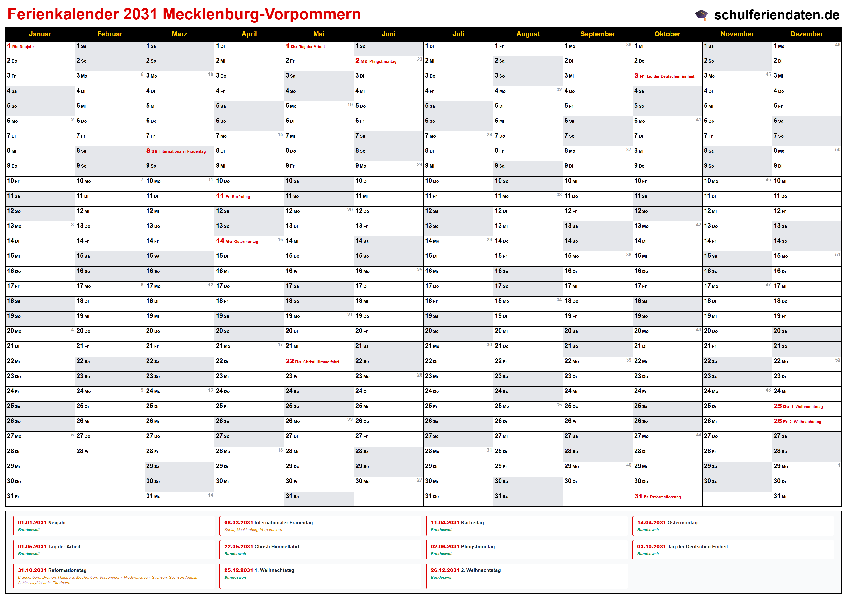 Ferienkalender Mecklenburg-Vorpommern 2031