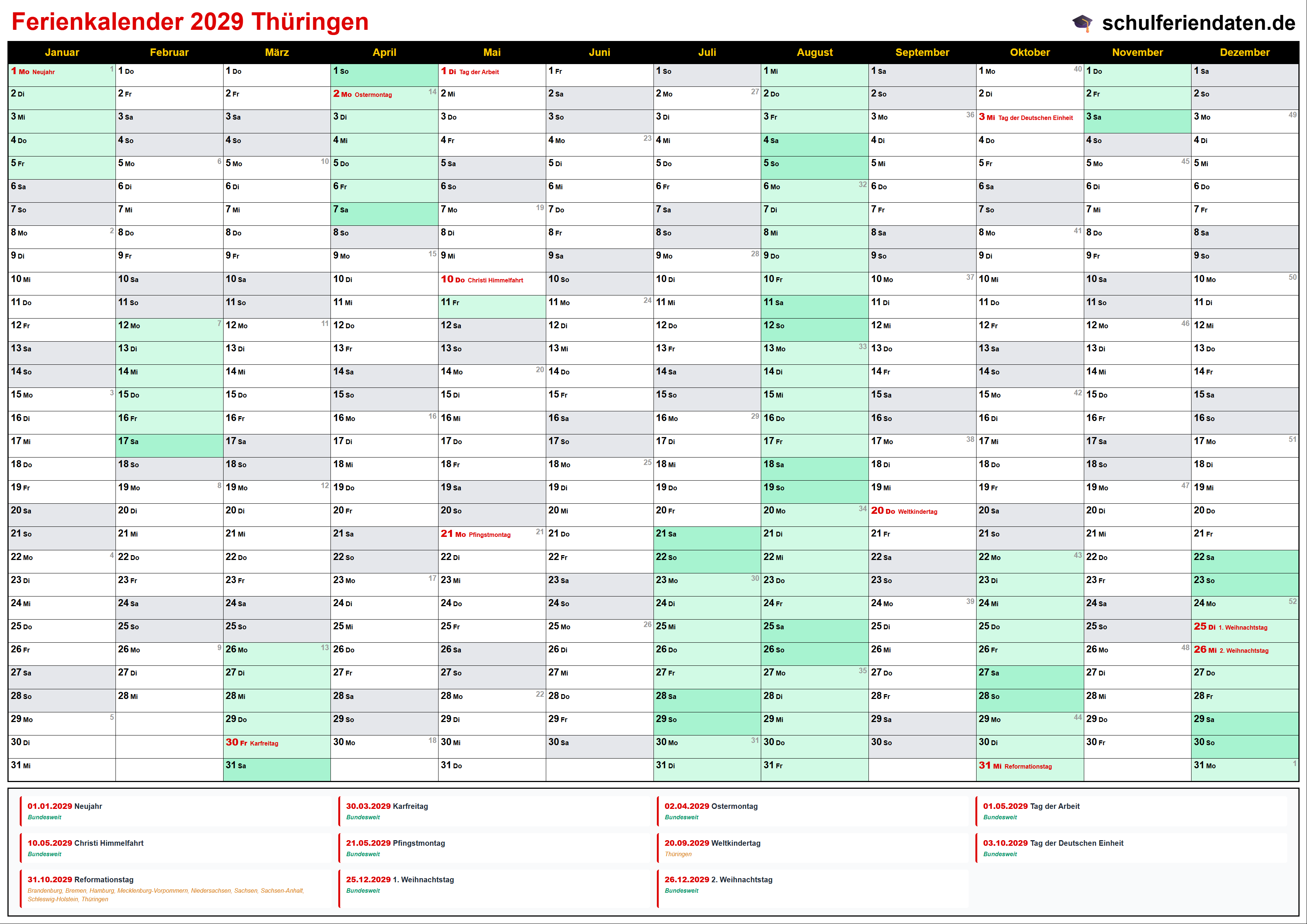 Ferienkalender Thüringen 2029